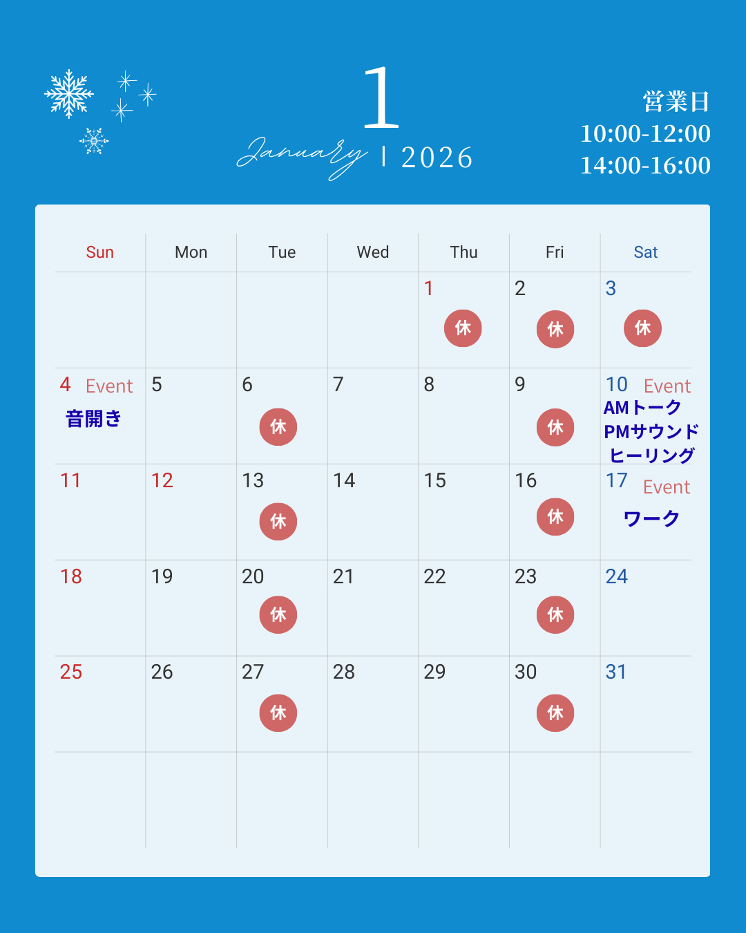 | 営業時間 | 10:00-12:00 14:00-16:00 火・金 休み |